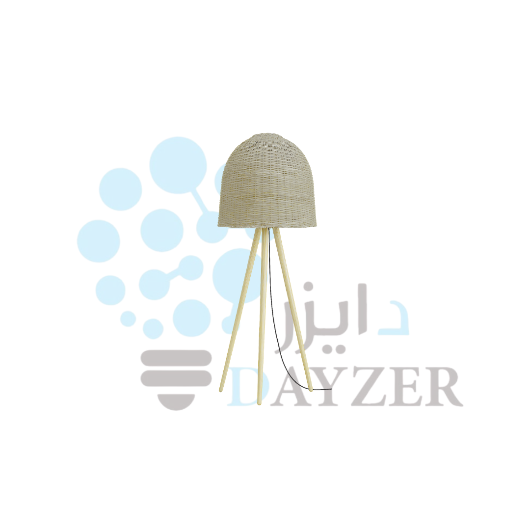 أباجورة أرضية أنيقة بتصميم مستوحى من الطبيعة، تجمع بين قاعدة ثلاثية من الخشب الطبيعي وقبّة مصنوعة من الخيزران الصناعي المضفور بعناية، لتضيف لمسة دافئة وعصرية لأي زاوية في منزلك.