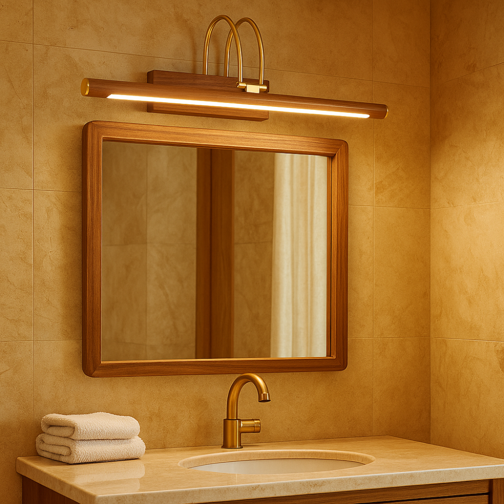 تضفي هذه القطعة إحساسًا بالدفء الطبيعي والترف المعماري. الخشب يضيف لمسة حميمية للمكان، بينما يمنح الذهبي أناقة فاخرة. مثالية لتكملة ديكورات غرف النوم، أو لمسة كلاسيكية على مرآة خشبية في مدخل المنزل.